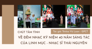 Chút tâm tình về đêm nhạc kỷ niệm 40 năm sáng tác của Linh mục – Nhạc sĩ Thái Nguyên Tác giả: Têrêsa Vũ Loan – GPCT Bạn yêu nhạc Thánh Ca theo cách của những người trẻ lặng lẽ: không ồn ào, không phô trương. Và trong lòng bạn, linh mục Thái Nguyên chiếm một chỗ đứng riêng biệt. …