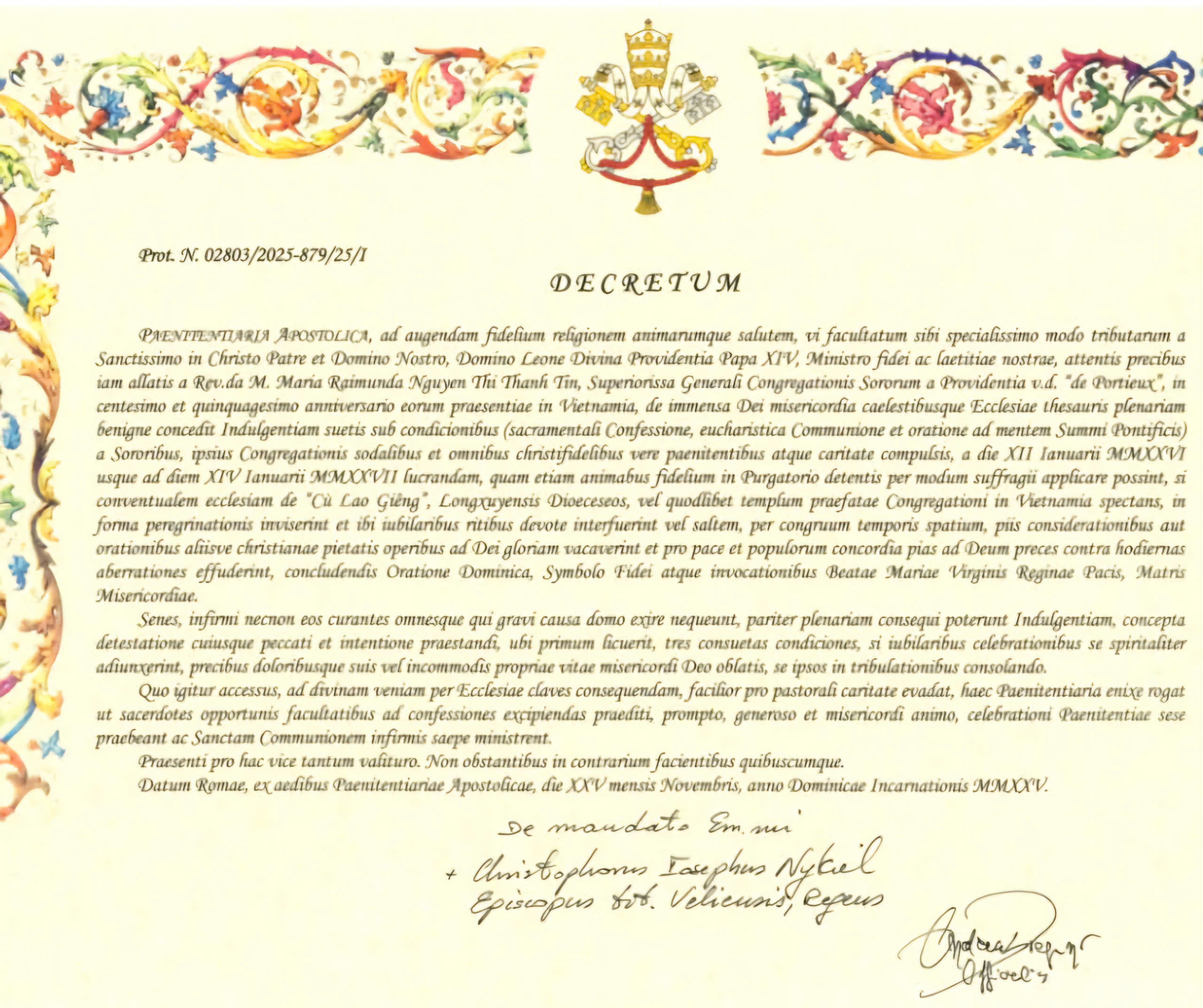 Ban hành tại Rôma, từ trụ sở Tòa Ân Giải Tối Cao, ngày 25 tháng Mười Một năm 2025.