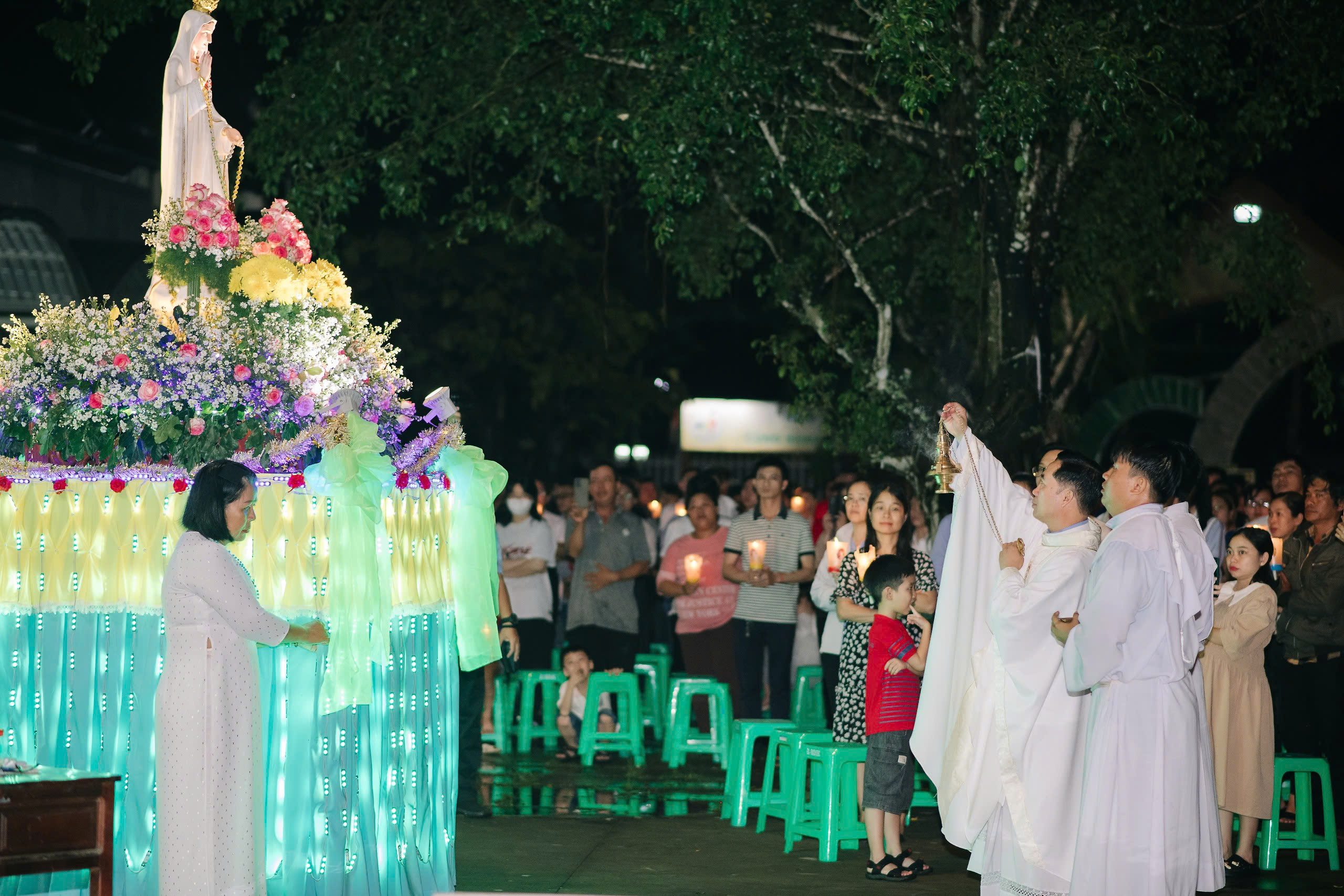 Hàng ngàn lượt khách hành hương trong và ngoài Giáo hạt Cần Thơ đã cùng quy tụ về bên Mẹ, sốt sắng tham dự các giờ cầu nguyện, cùng nhau lần chuỗi Mân Côi theo lời mời gọi của Mẹ: “Ăn năn đền tội – Năng lần hạt Mân Côi – Tôn sùng Trái Tim Mẹ.” Từng lời kinh, tiếng hát vang lên như nối kết muôn con tim, giúp mỗi người thêm quyết tâm đổi mới đời sống trong niềm tin và tình yêu.