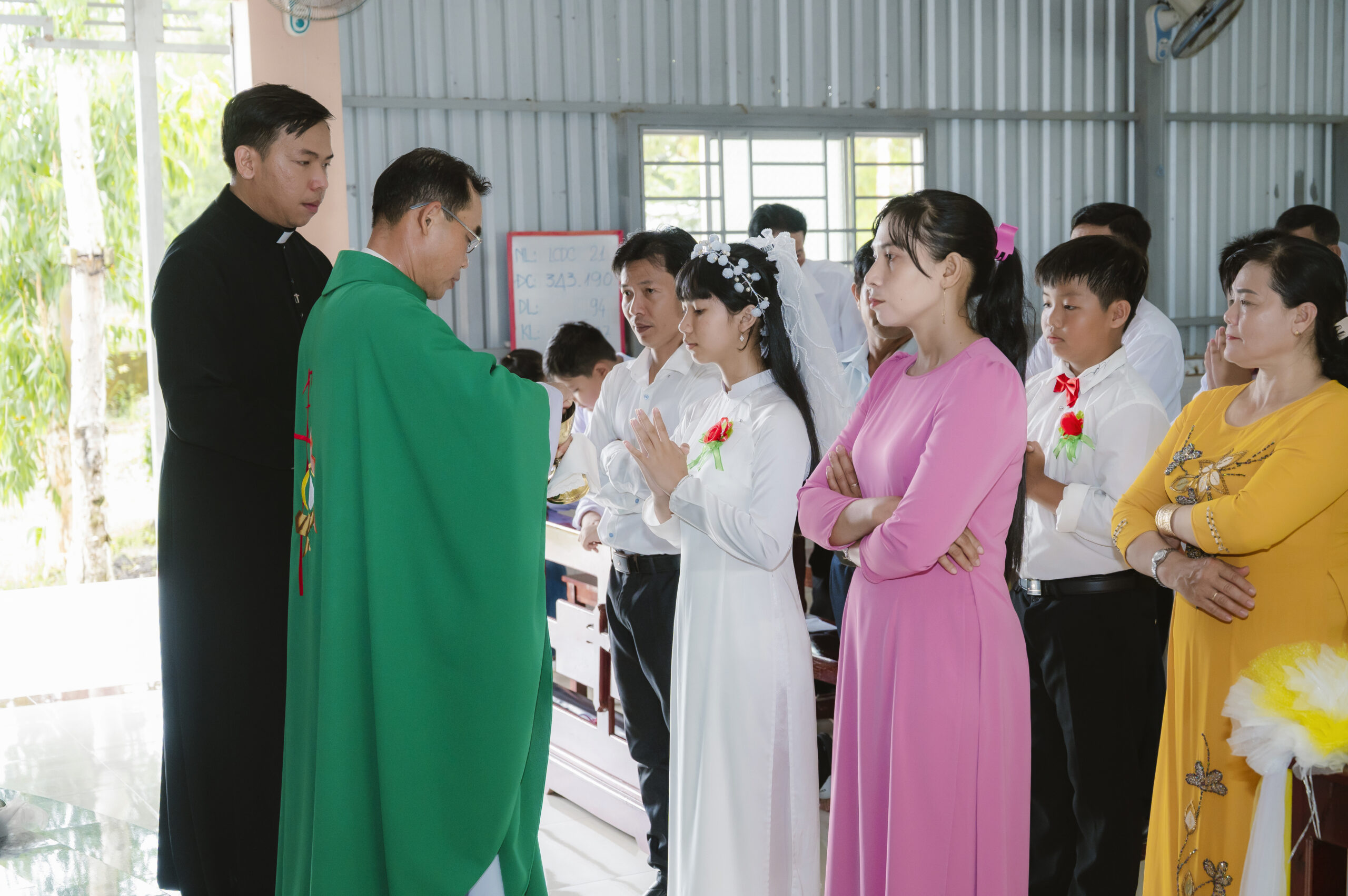 Đây là dấu mốc thiêng liêng và đáng nhớ trong hành trình đức tin của các em – lần đầu tiên được đón rước chính Chúa Giêsu vào lòng. Trong bài chia sẻ, cha chủ tế nhắc nhở các em: “Từ nay, Chúa Giêsu không chỉ ở trong nhà thờ, mà còn ở ngay trong trái tim của các con. Hãy giữ tâm hồn luôn trong sáng, biết yêu thương, vâng lời và siêng năng đến với Chúa mỗi ngày.”